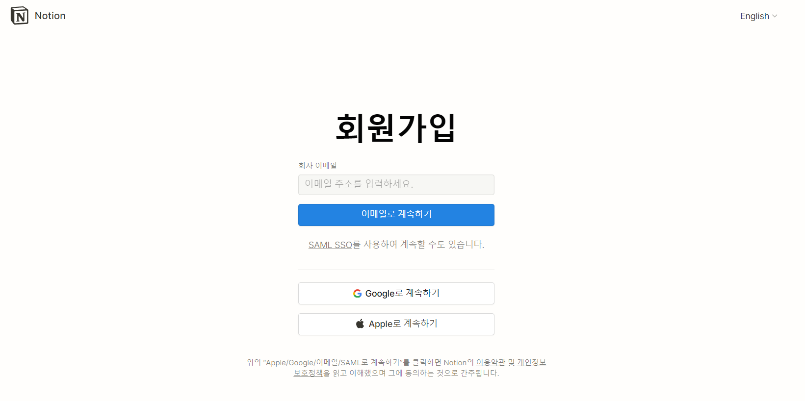 노션 로그인을 누르면 다음 화면이 되지요.