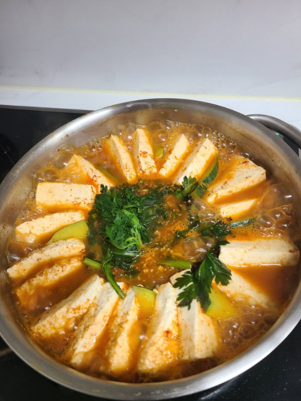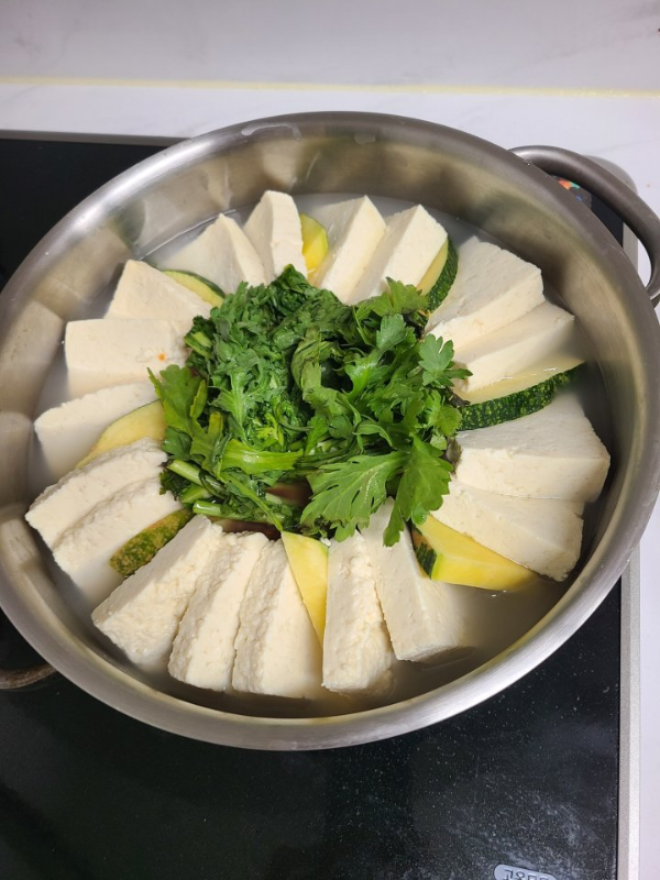 두부 1모, 쑥갓, 호박