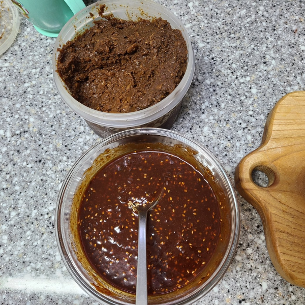 견과류 가루가 쌈장의 짬맛을 잘 조절해줍니다. 견과류가루가 좀 많은데? 정도 되어도 좋습니다.