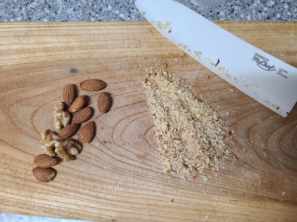 견과류 가루가 없을 때! 사진처럼 칼로 좀 다지면 됩니다.