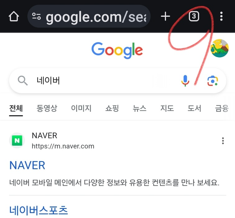 모바일의 크롬화면에서 오른쪽 숫자가 열려있는 창의 갯수입니다.