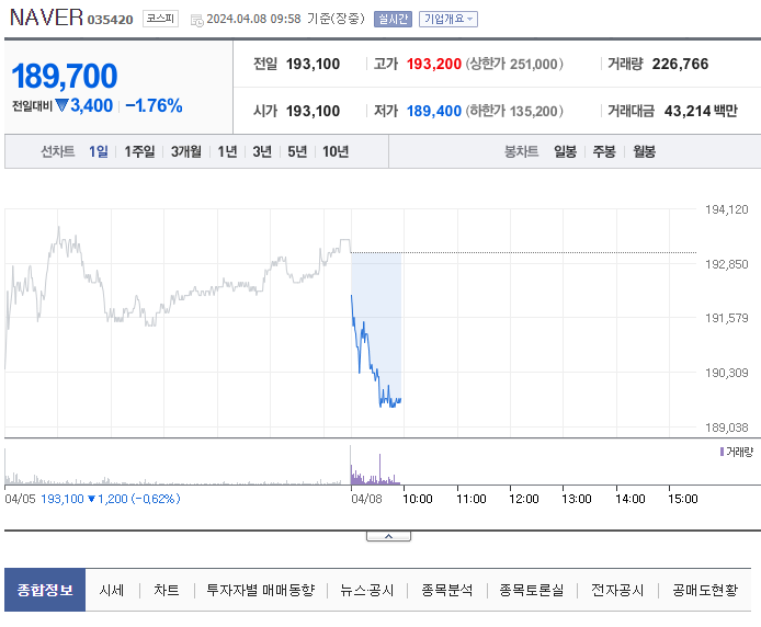 여러 탭이 많은데 우선 '종합정보'를 살펴보면 잘 나와 있습니다.