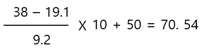 ② 위에서 얻은 Z점수를 다음 공식에 대입하여 표준점수를 산출합니다.