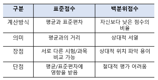 표준점수와 백분위는 어떤 차이점이 있나요?