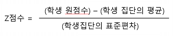 (표준점수) = (Z점수) × (해당 영역 및 과목의 표준편차) + (평균)