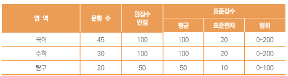 (국어와 수학은 공통+선택과목을 합한 문항수, 탐구는 각 과목당 문항수 입니다.)