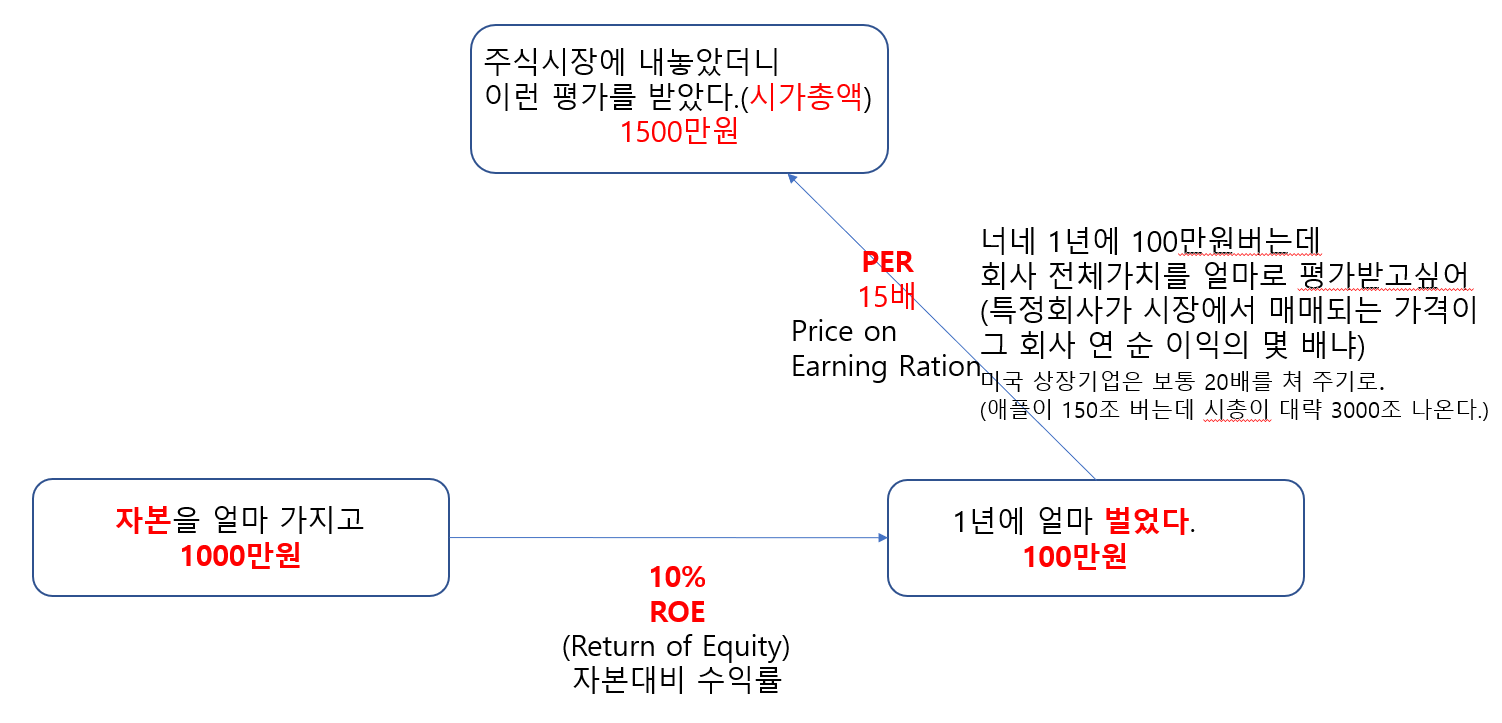 자본 1000만원인데 시장에 상장시켜보니 1500만원의 평가를 받더라.